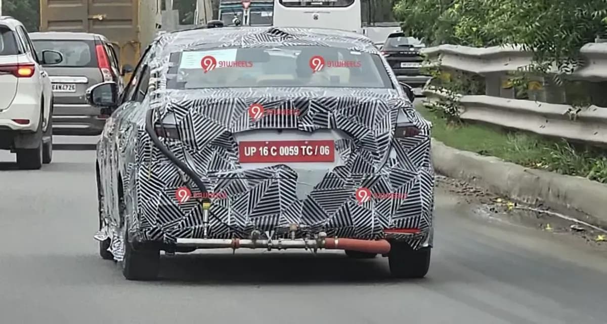 The spy images provide a glimpse of the car’s rear end, where we can spot some notable features. The Amaze prototype is equipped with an emission testing kit attached to its exhaust, indicating ongoing compliance testing for the latest emission norms. Additionally, the partially visible tail-lamps appear to have received a smoked treatment, lending a sporty and modern appeal to the rear profile.