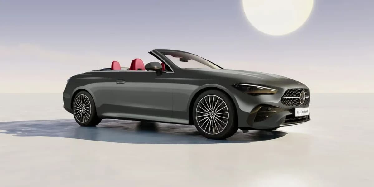 The Mercedes-Benz CLE Cabriolet is not just about performance; it is also a statement of luxury and style. The exterior design is sleek and modern, featuring a soft-top roof that can be retracted to enjoy an open-air driving experience. The front of the car is dominated by the signature Mercedes-Benz grille, flanked by LED headlights that give the car a bold and aggressive look.